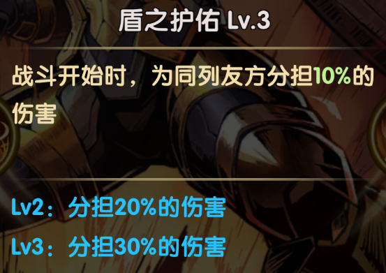 无畏圣盾分摊前排受到的敌方普攻伤害99.82k