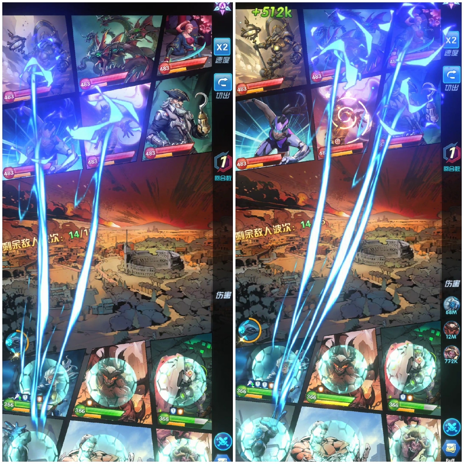 下图是沉思攻击1号位,触发的电弧随机攻击了另外3名英雄,并没有攻击沉思